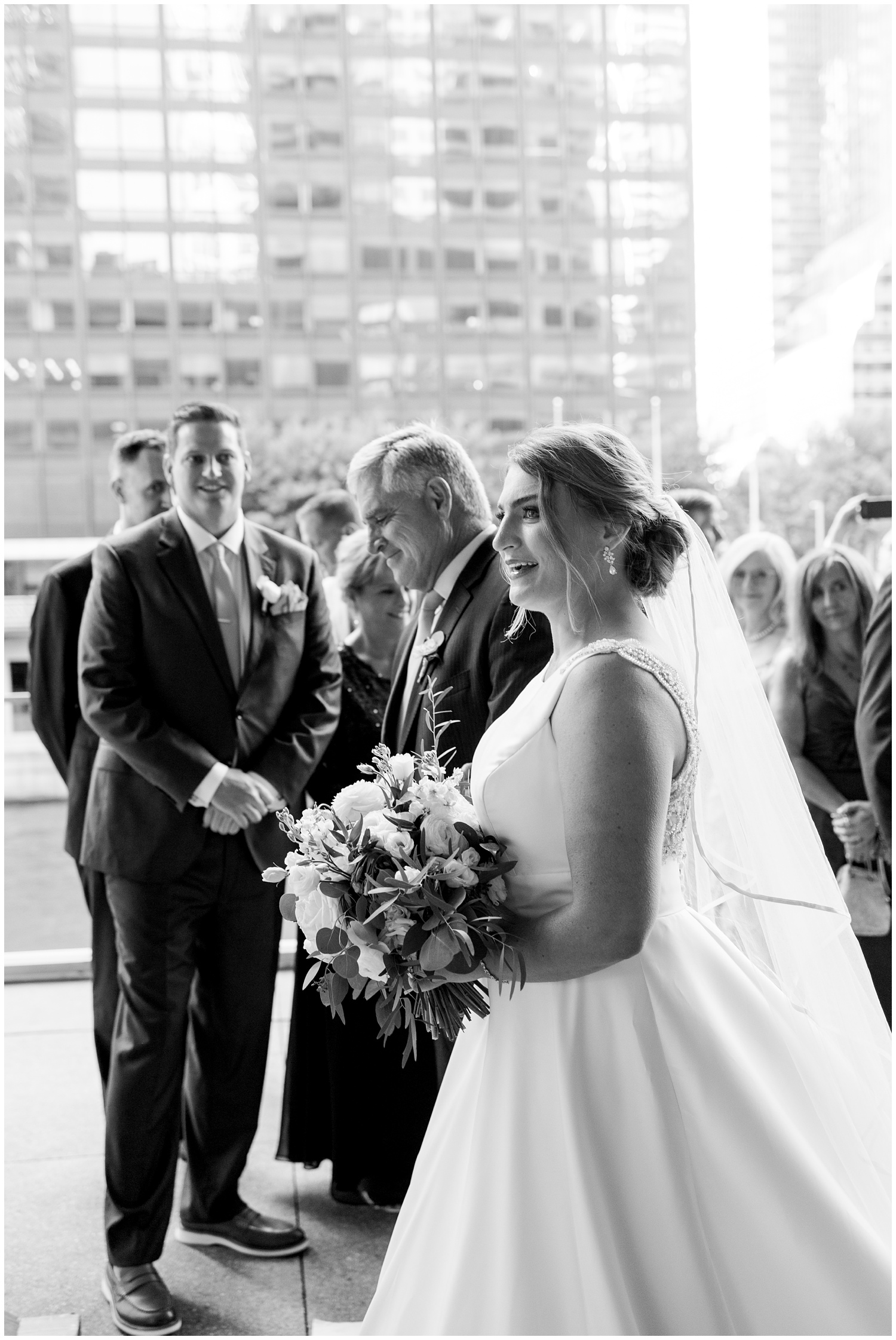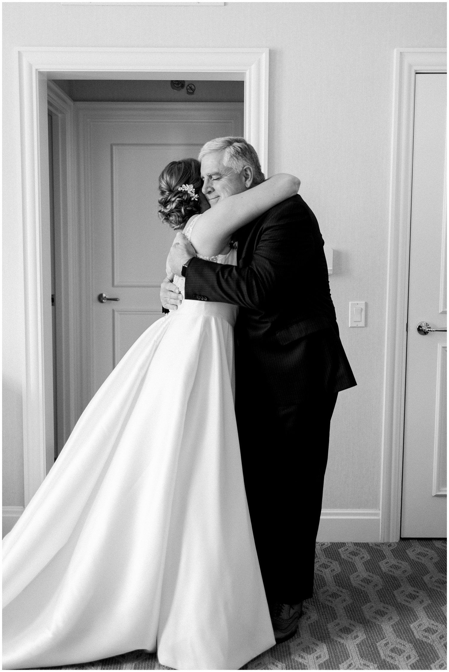 Gretchen started the morning with her girls and close family members and Tom had a similar morning with his guys and family. One of my favorite moments from the morning was when Gretchen opened her letter from Tom. It was such a quiet, authentic moment filled with emotion! Once they were both ready for their wedding day we did their first look on one of the staircases at the JW.