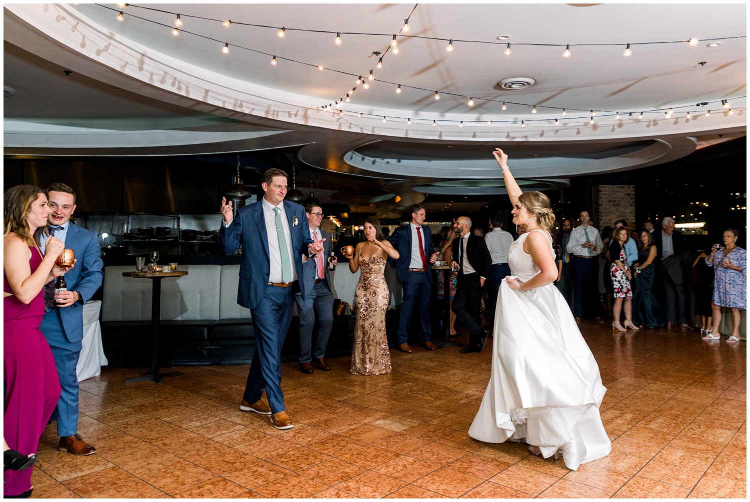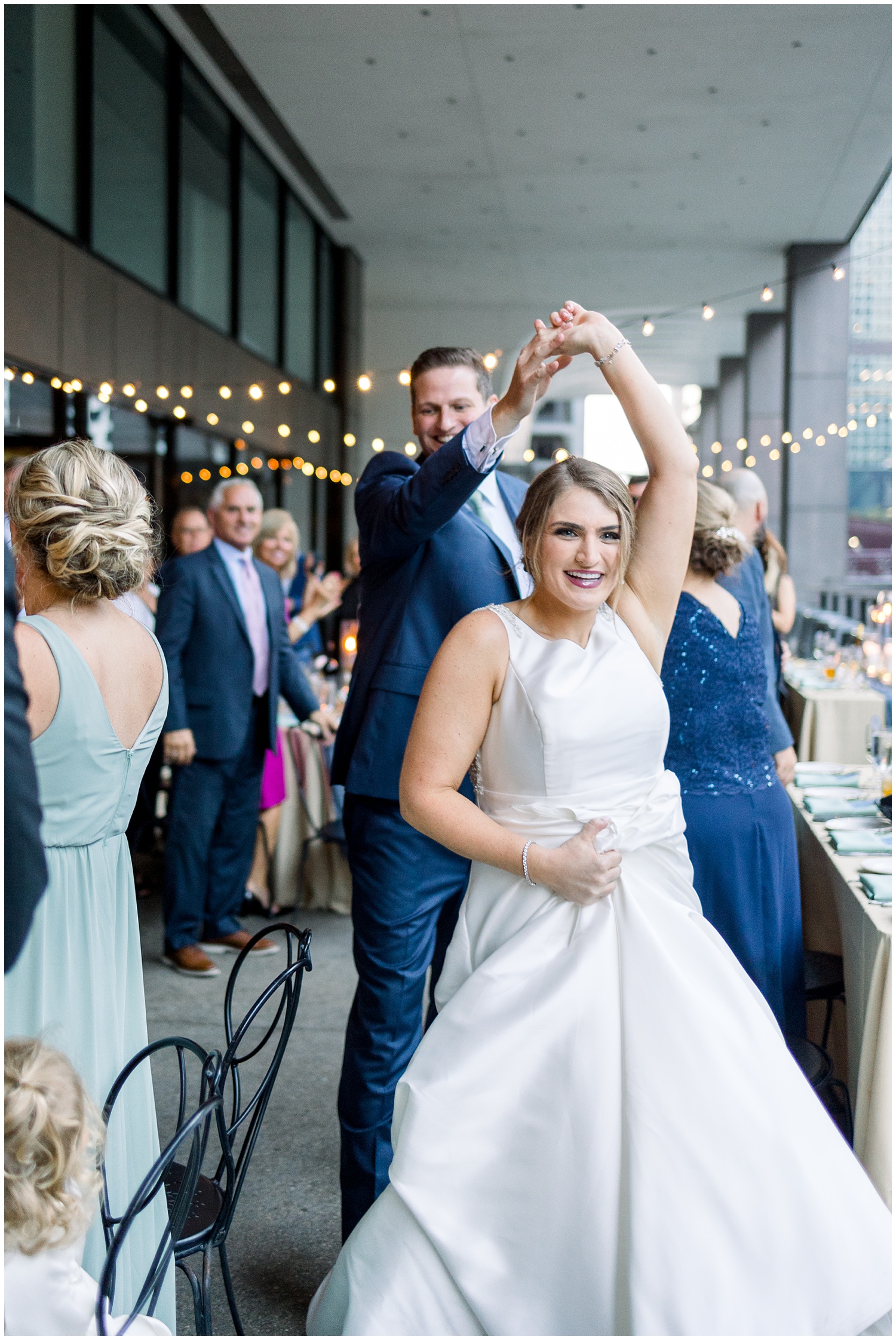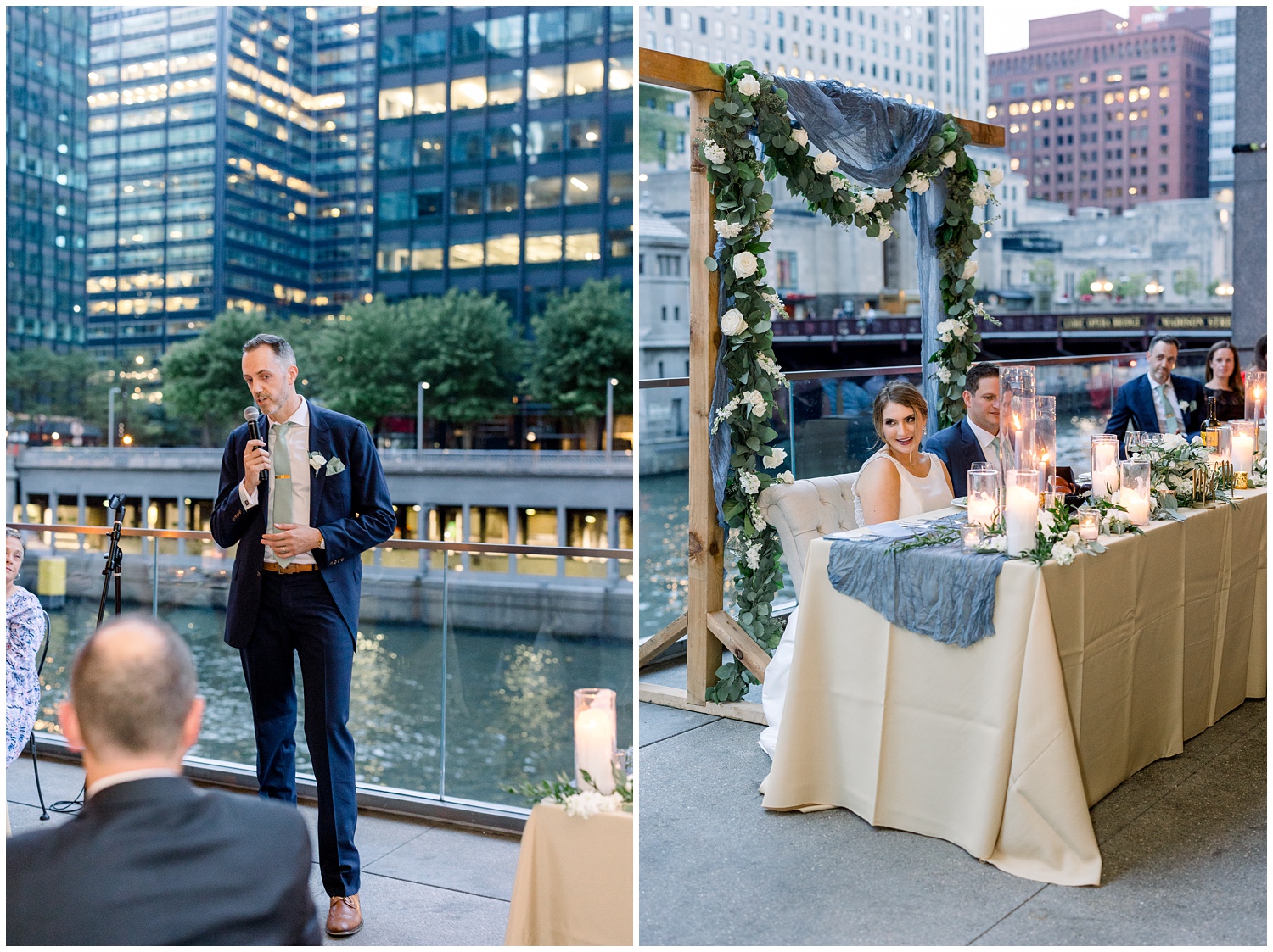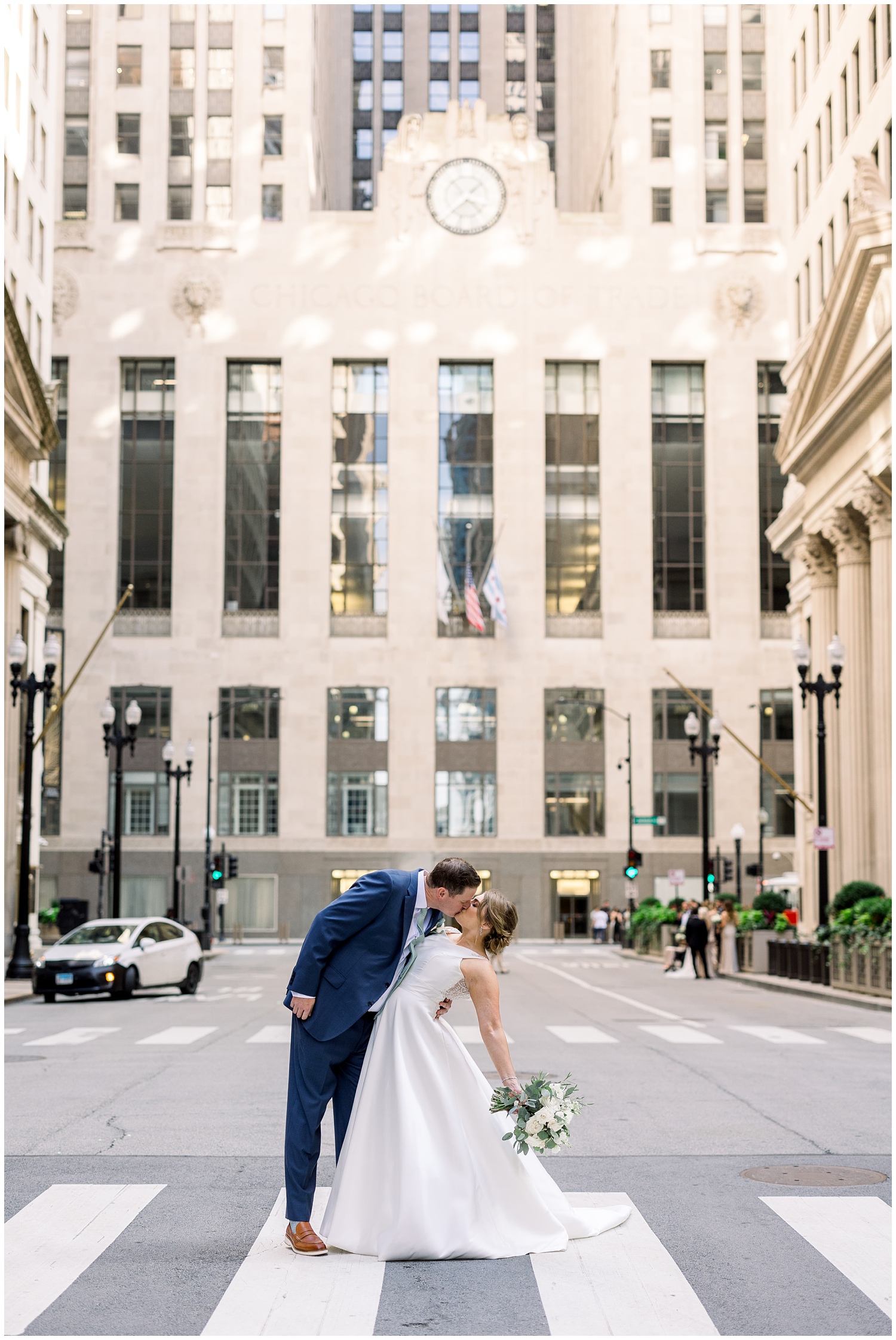 Next we headed to the Chicago Board of Trade since it’s such a short walk from the hotel and minutes from Rivers Restaurant. We were able to take advantage of the beautiful columns of the buildings next to the Board of Trade and then we also took some timeless photos in the middle of street. I never get tired of the classic looks of wedding parties at this amazing spot in the city! After we were done we headed to Rivers for the rest of the celebration!